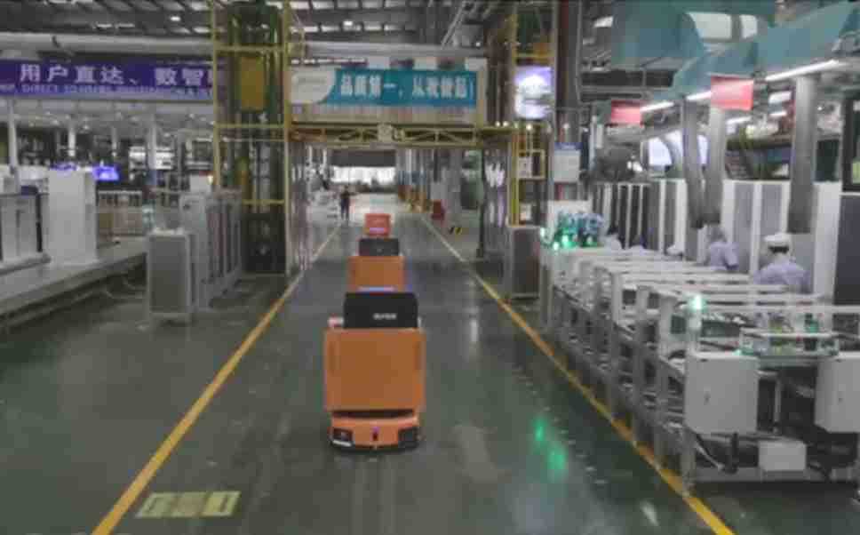 为车载冰箱物流配送打造的智能解决方案,,包含产中物流通过潜伏举升AMR搬运至线边,,产后成品物流智能仓储,,流程包含产中物流智能齐套入库,,线边安灯叫料AMR智能配送至线边,,成品入库、、出库,,,通过无人堆高车机器人,,,智能仓储管理替代人工作业管理,,,实现更高存储、、、、更高效率、、、、更具柔性化的解决方案。。。。